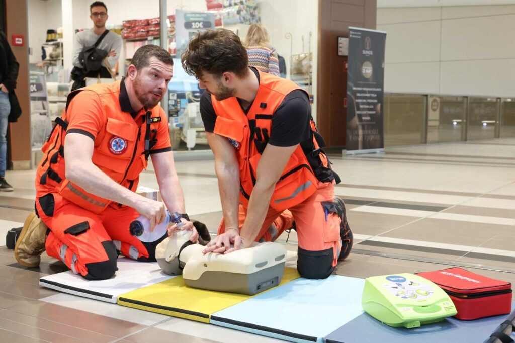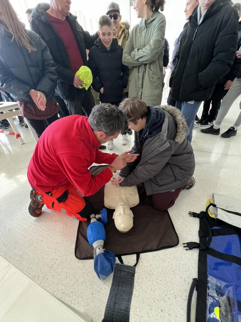 Poseban naglasak stavljen je na edukaciju o pravilnom postupanju u slučaju srčanog zastoja i drugih hitnih stanja. Naši djelatnici aktivno su provodili demonstracije i praktične vježbe kardiopulmonalne reanimacije, potičući građane na pravovremeno prepoznavanje simptoma i brzo reagiranje, čime se može značajno povećati šansa za preživljavanje i oporavak oboljelih osoba.