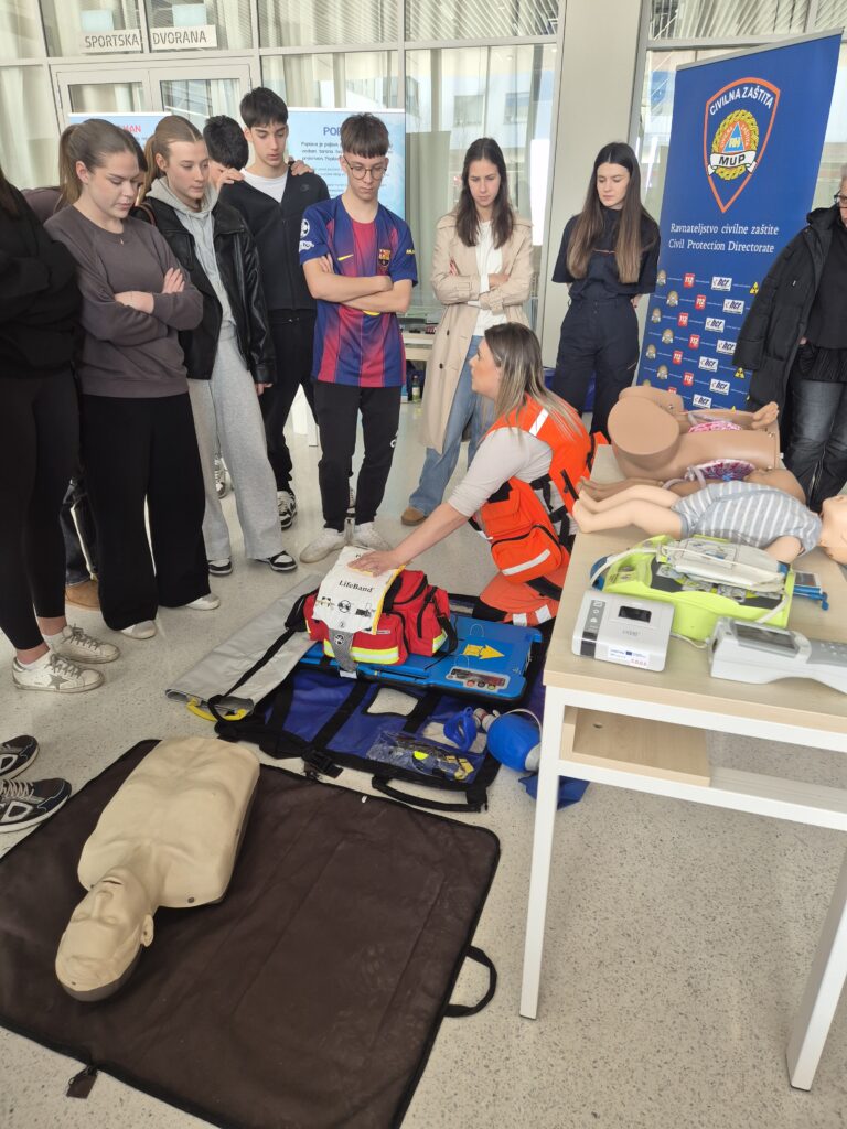 Naš Zavod aktivno je sudjelovao u programu, gdje je predstavio vozilo za masovne nesreće te opremu prilagođenu hitnim intervencijama na terenu. Poseban naglasak stavljen je na praktični dio prezentacije – održana je radionica prve pomoći tijekom koje su učenici imali priliku naučiti osnovne postupke pružanja pomoći unesrećenima. Također je provedena kratka edukacija o postupcima reanimacije, uz prikaz rada medicinskog tima u simuliranim uvjetima, čime se dodatno istaknula važnost pravovremene i pravilne reakcije u hitnim situacijama.